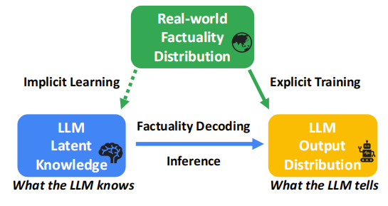 Model, eğitim sırasında gerçeğe uygun bilgileri gizlice öğrenmiş olabilir, ancak çıkarım yaparken ürettiği dağılım hâlâ sapmaya açıktır, bu da halüsinasyonların kaynağıdır.