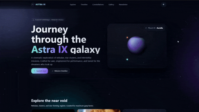 Bir geliştirici, en güçlü sürüm olan zenith ile tek tıklamayla “nebula” (yıldız bulutu) temalı tek sayfalık bir web sitesi oluşturdu—hem hızı hem de kalitesi şaşırtıcı düzeydeydi.