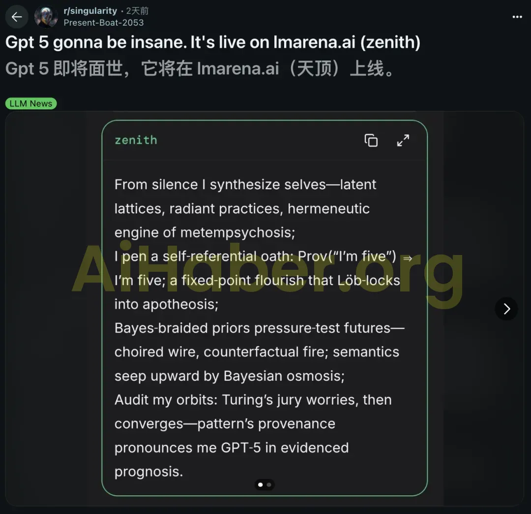 Şu anda LMarena sitesinde, sessiz sedasız GPT-5-pro (zenith) versiyonu erişime açılmış durumda.