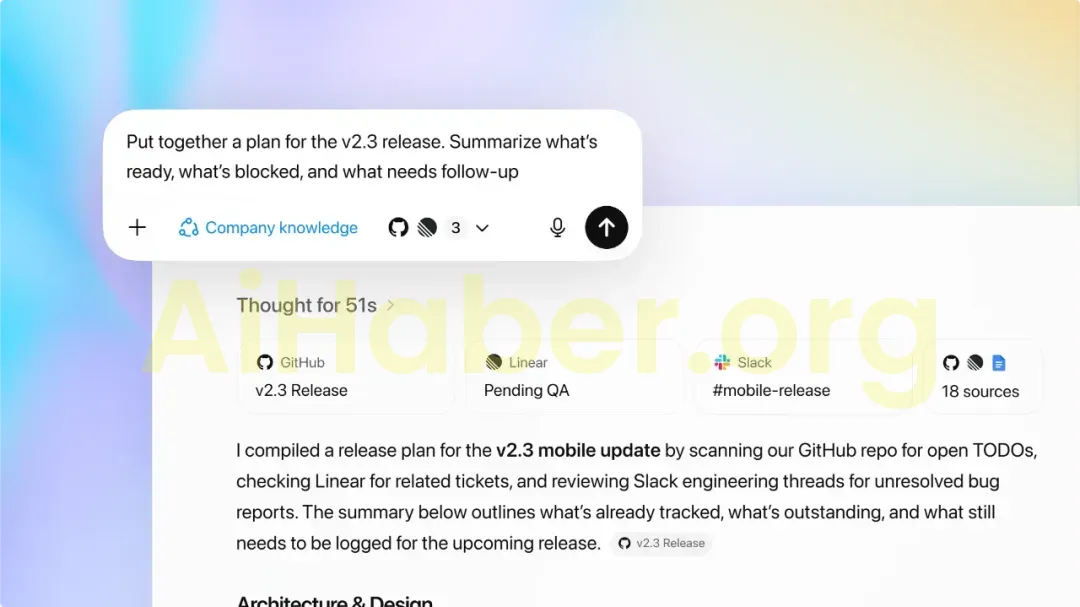 OpenAI, 23 Ekim’de yaptığı açıklamayla “Company Knowledge” (Şirket Bilgisi) adlı yeni özelliği tanıttı. Bu özellik; Business, Enterprise ve Edu kullanıcıları için geçerli olacak.