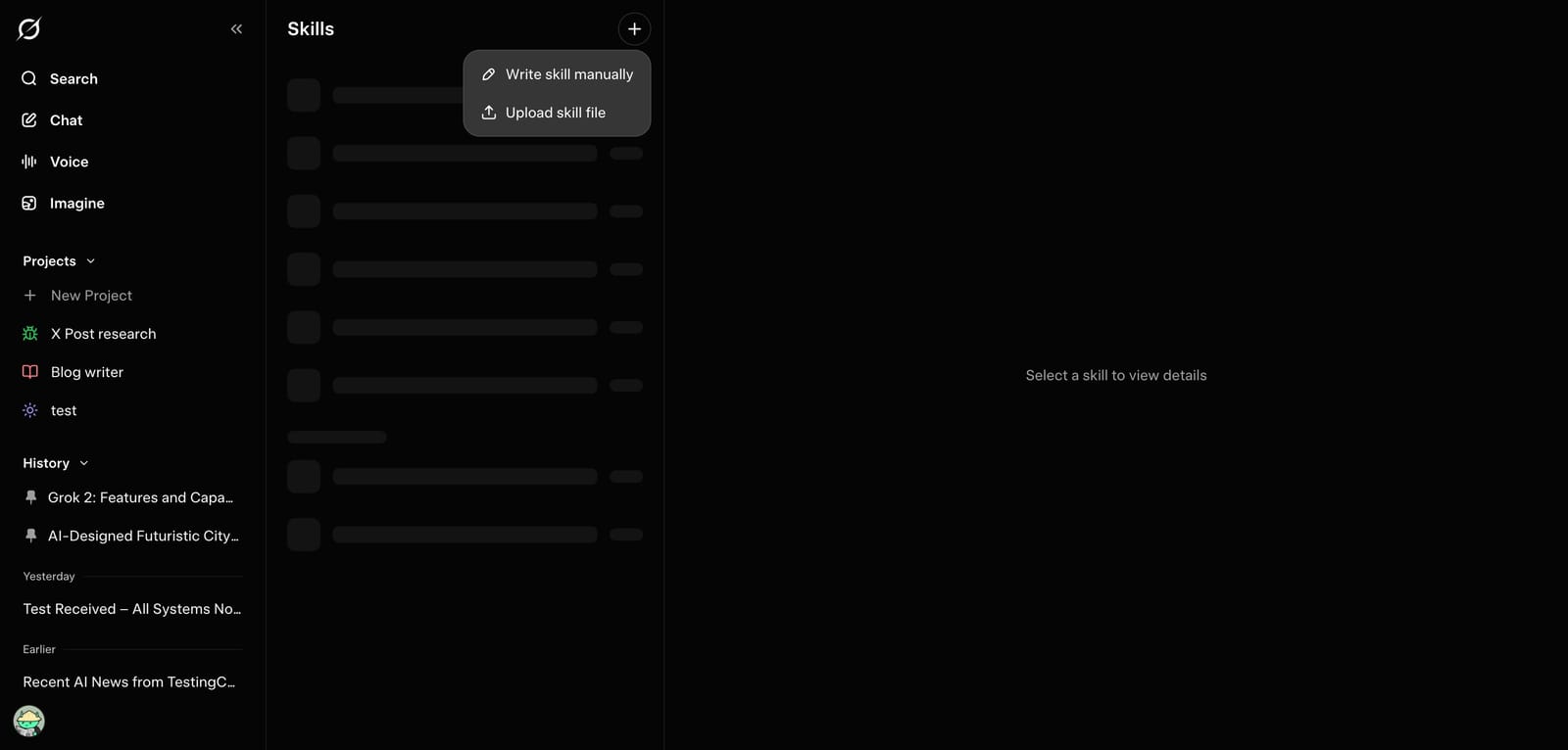 Eşlik eden kullanıcı arayüzü modelleri, rakip platformlarda şu anda standart olan aynı yapıyı takip ederek Ad, Açıklama ve Talimat olmak üzere üç alandan oluşan bir beceri oluşturma iletişim kutusunu ortaya çıkarır. Ayrı bir yükleme iletişim kutusu, özellikle Anthropic’in Claude’un kendi beceri sistemi için kullandığı ve TestingCatalog’un ilk olarak Ekim 2025 ‘te ele aldığı bir format kuralı olan .zip, .skill ve .md dosyaları aracılığıyla BECERİLERİ içe aktarmayı destekler.BREAKING: “BECERİLER” YAKINDA GROK’a GELECEK! 🚀xAI, GROK için “BECERİLER” adlı yeni bir özellik üzerinde çalışıyor! 🔥Talimatlarıyla özelleştirilmiş beceriler tanımlamanıza olanak tanır ve GROK istediğinizde bunları gerçekleştirir! Beceriler, tam aracıları değil, web araştırması, içerik hazırlama veya veri aramaları gibi belirli görevler için kaydedilebilen, paylaşılabilen ve yeniden yüklenebilen modüler talimat şablonlarını temsil eden daha ayrıntılı bir özelleştirme katmanını temsil eder.